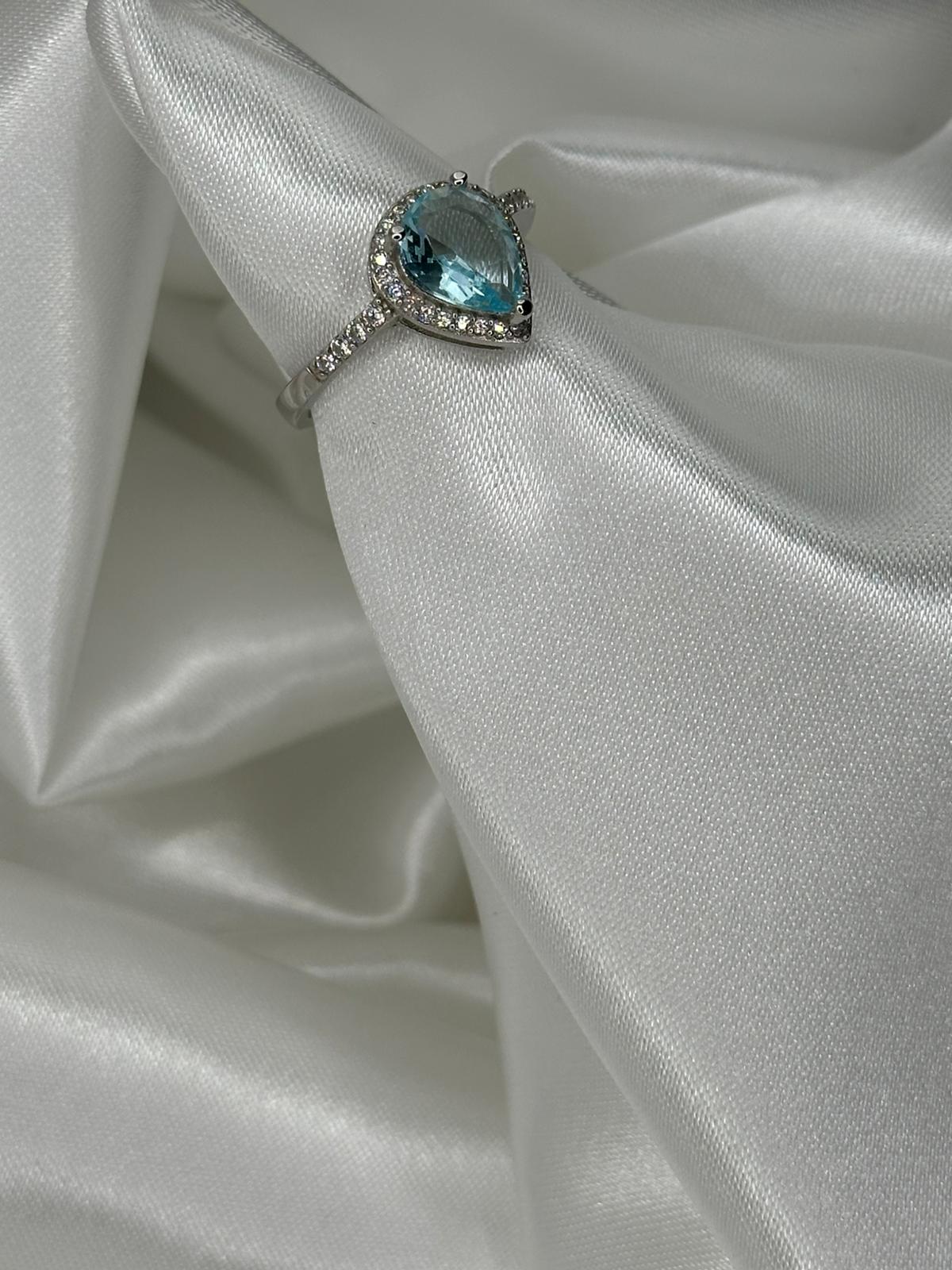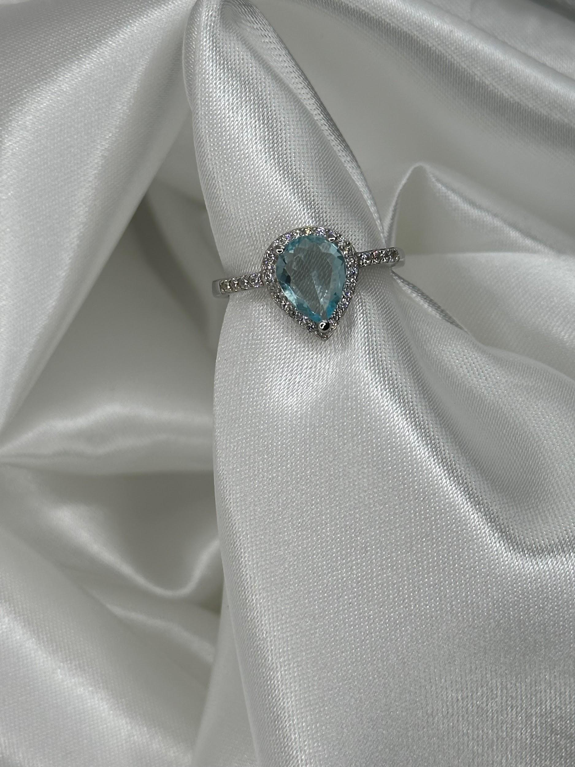 Anello in argento 925 taglio goccia con pietra acquamarina e zirconi naturali, regolabile