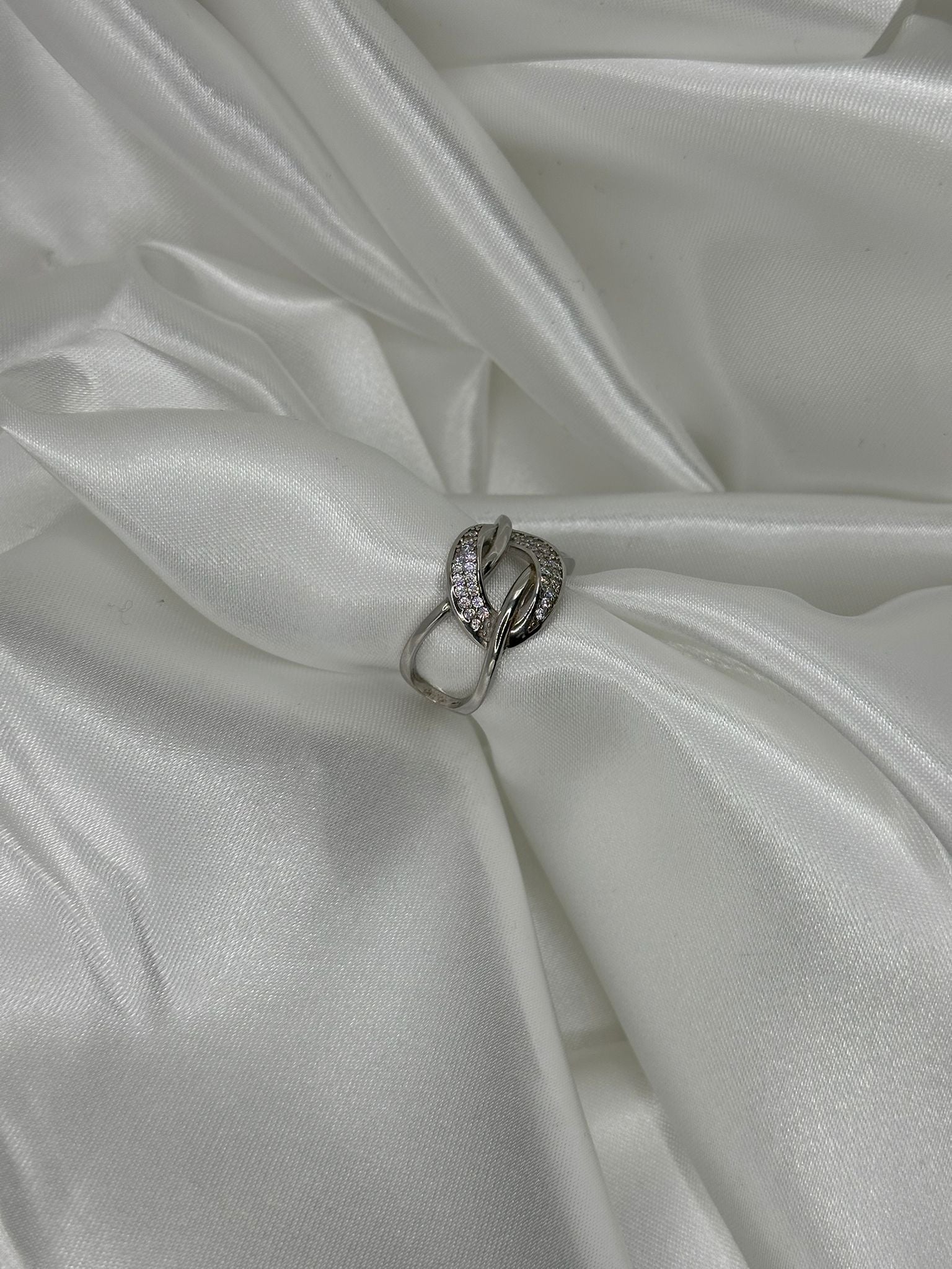 Anello in argento 925 catena stilizzato con centrale zirconato