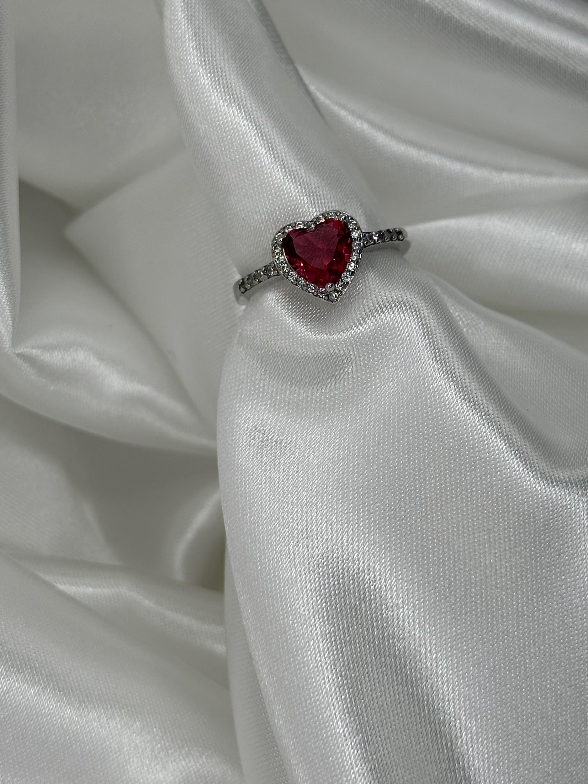 Anello Cuore Con Pietra Rossa