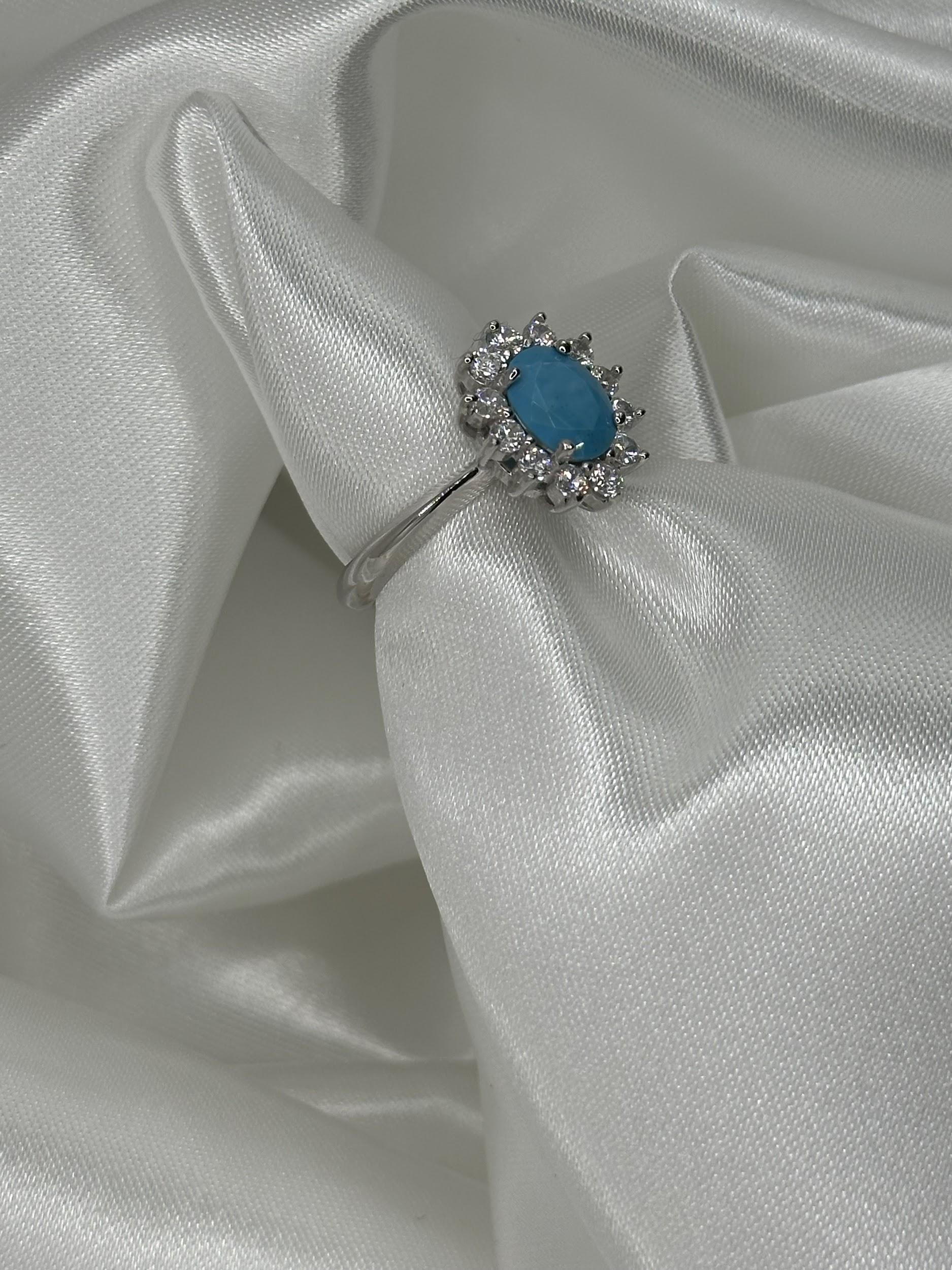 Anello taglio kate con zirconi naturali e pietra turchese con gambo liscio regolabile in argento 925