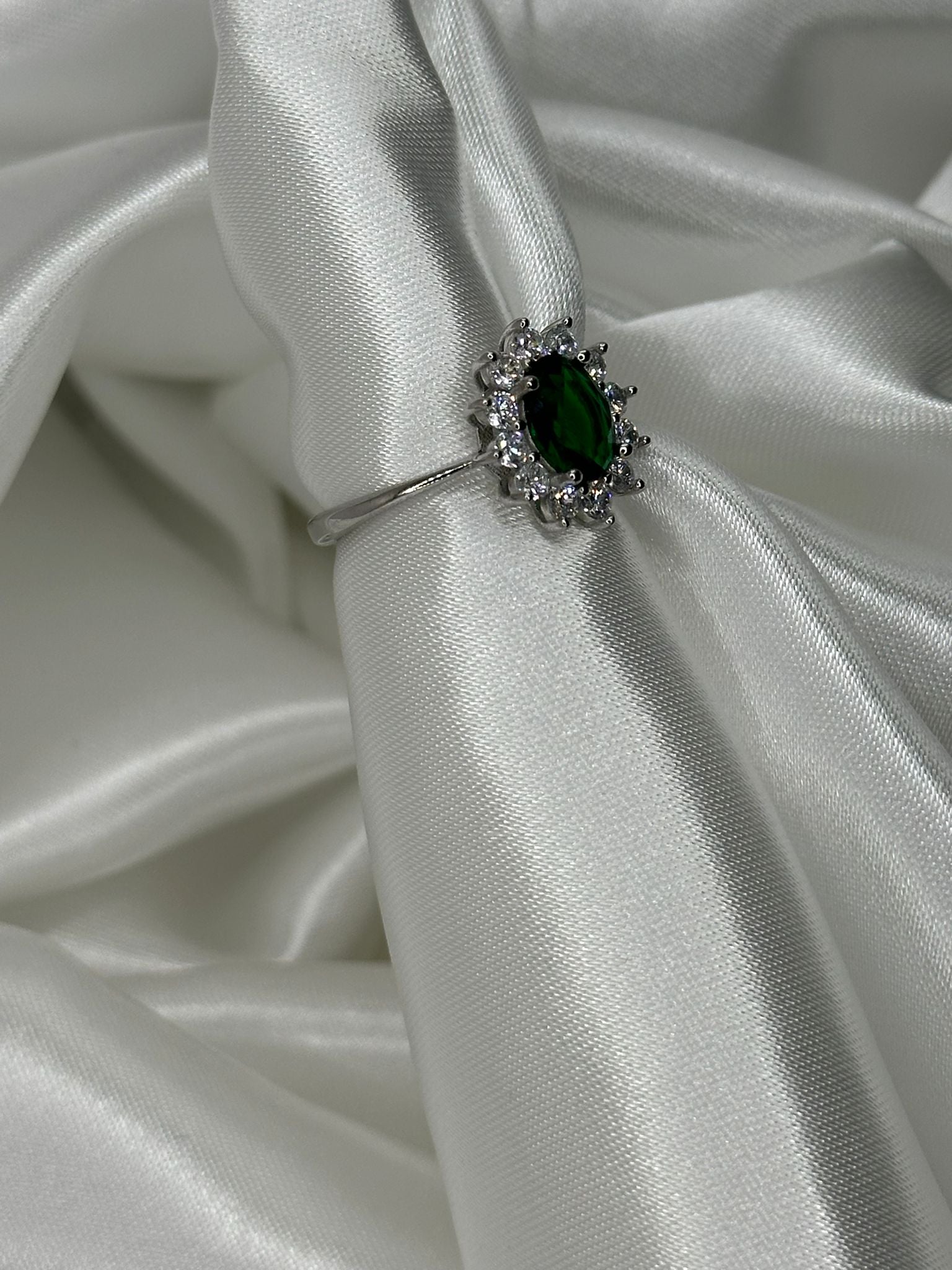 Anello in argento 925 taglio kate, con zirconi naturali e gambo liscio regolabile