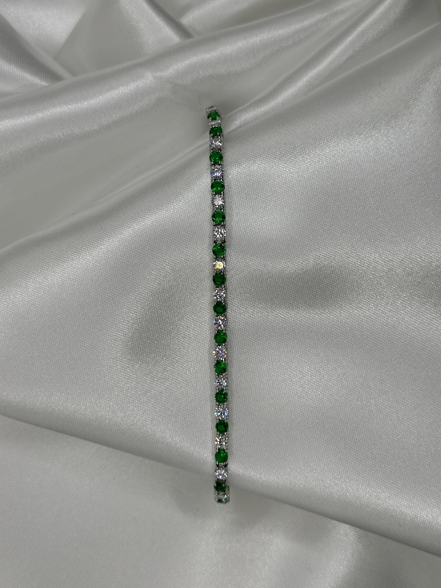 Tennis in argento 925 bicolore con zaffiri verdi e bianchi alternati